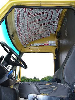 Die Zollbeamten stellten am Innendach des Führerhauses Manipulationen fest. „Nach dem Abschrauben der Verkleidung fielen die Schmuggelzigaretten aus dem »Himmel« des Dachs“, so Thomas Meister, Pressesprecher des Hauptzollamts München.